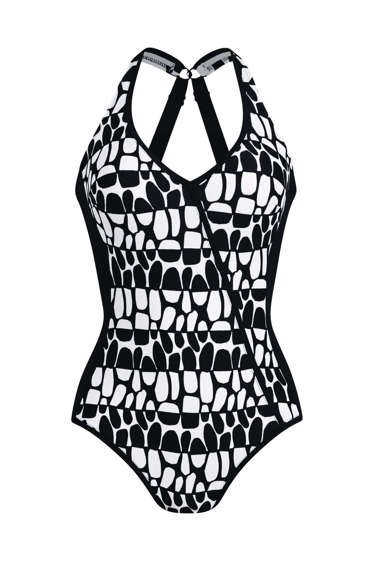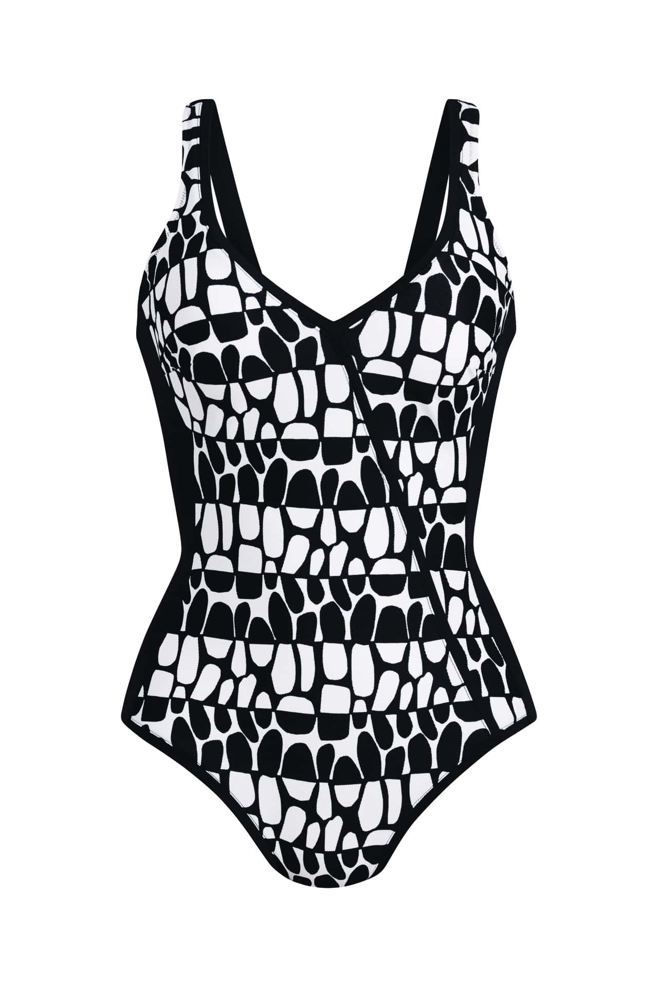 De zwarte accenten en diagonale belijning zorgen voor een slankmakende look en een stijlvolle uitstraling. Het badpak met verstelbare bandjes (ook als halter te dragen) en voering biedt optimale pasvorm en ondersteuning. Ideaal voor het afzakken van schouderbanden, makkelijk bewegen tijdens het zwemmen of om de zonafdruk te verplaatsen. Dit shaping badpak is perfect voor strand, zwembad en zonvakantie.