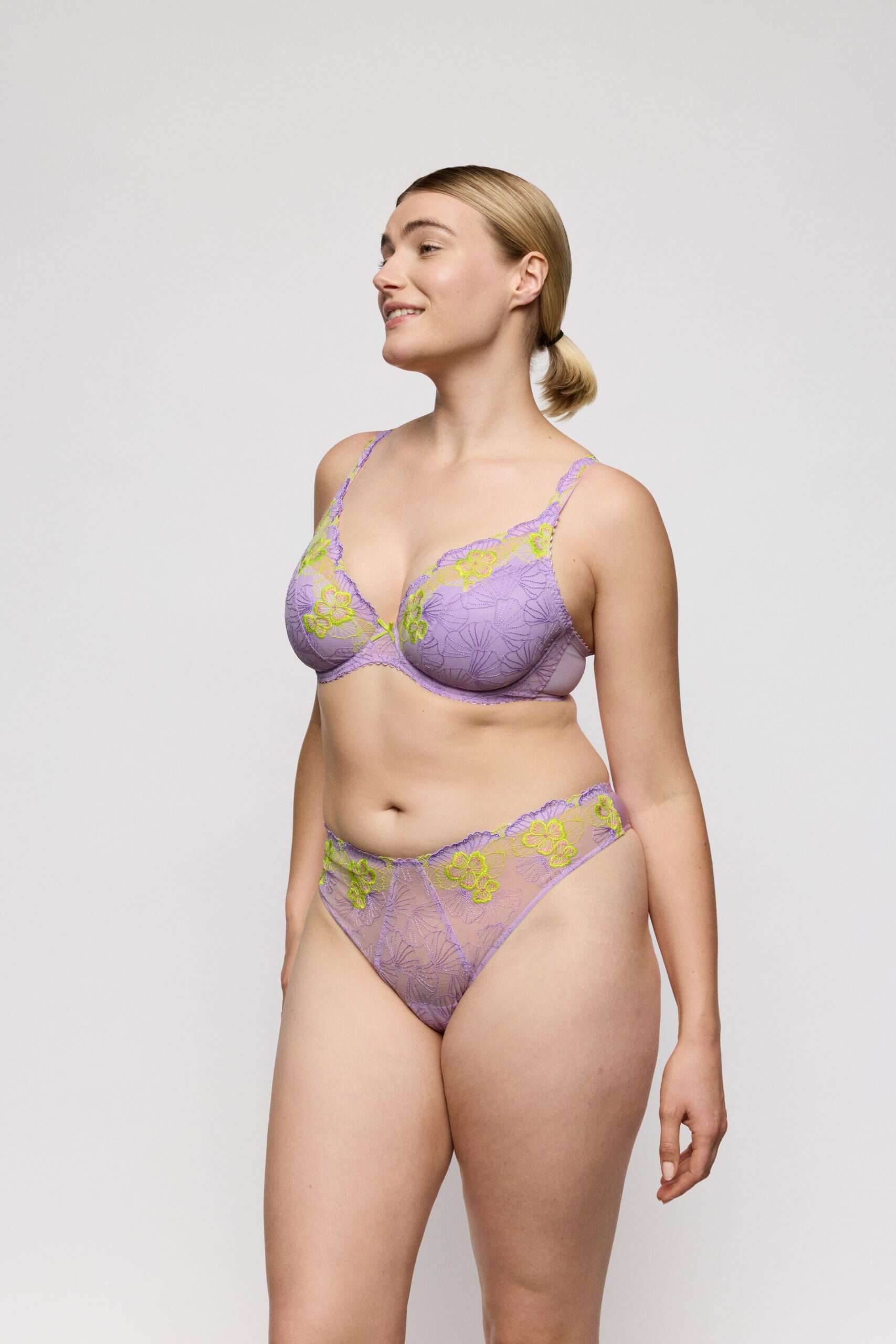 Wat een heerlijke kleur voor dit seizoen. Een combi van lila met lime. Deze string komt uit de serie Ixia en is perfect te combineren met de plunge of volle cup bh uit deze lijn. Maak jouw lingeriesetje compleet met deze string.