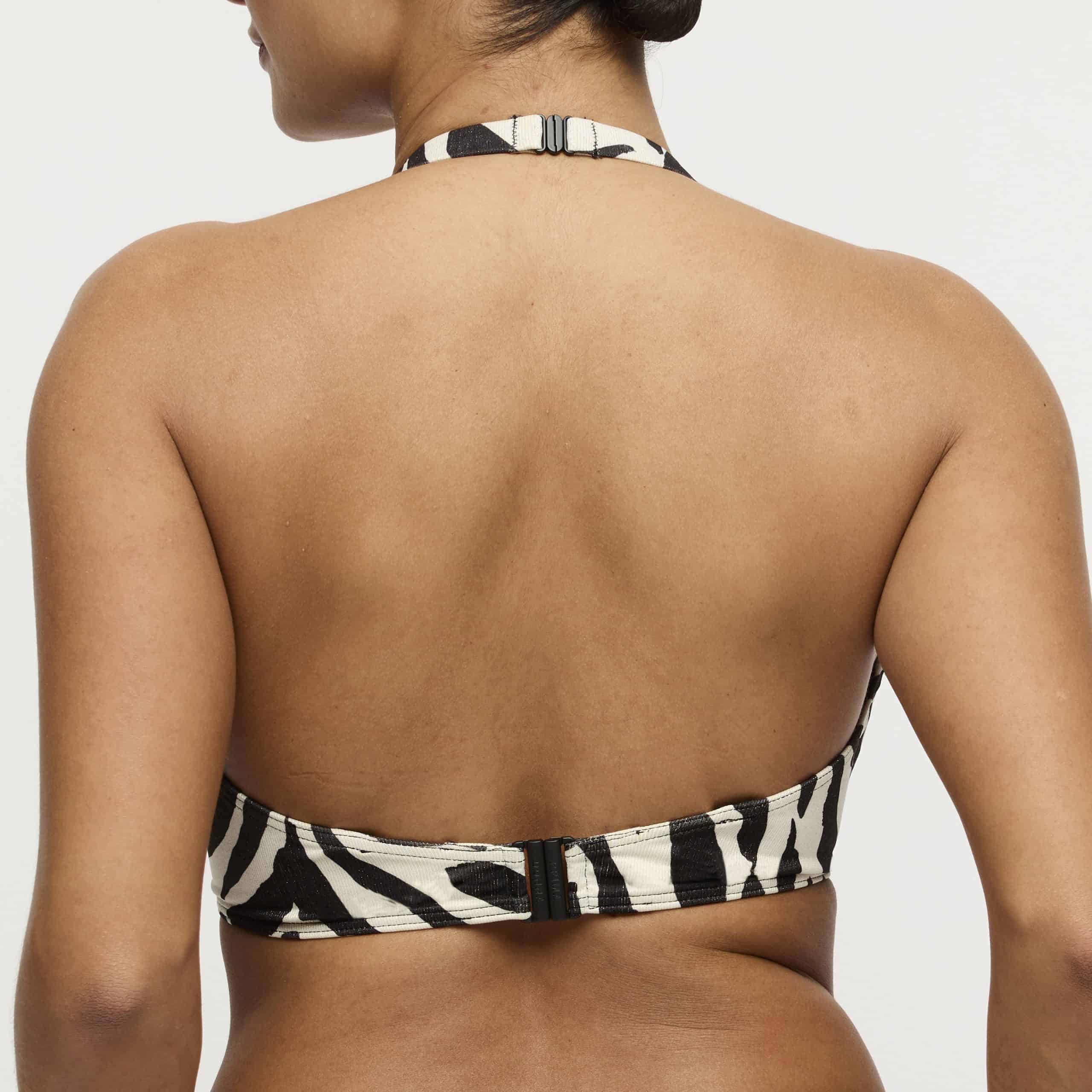 Een must-have voor een fashionable en zelfverzekerde zomerlook. Deze top kun je op drie manieren dragen; als halter, gekruist en natuurlijk ook gewoon recht. De bikinislip moet je apart bestellen.